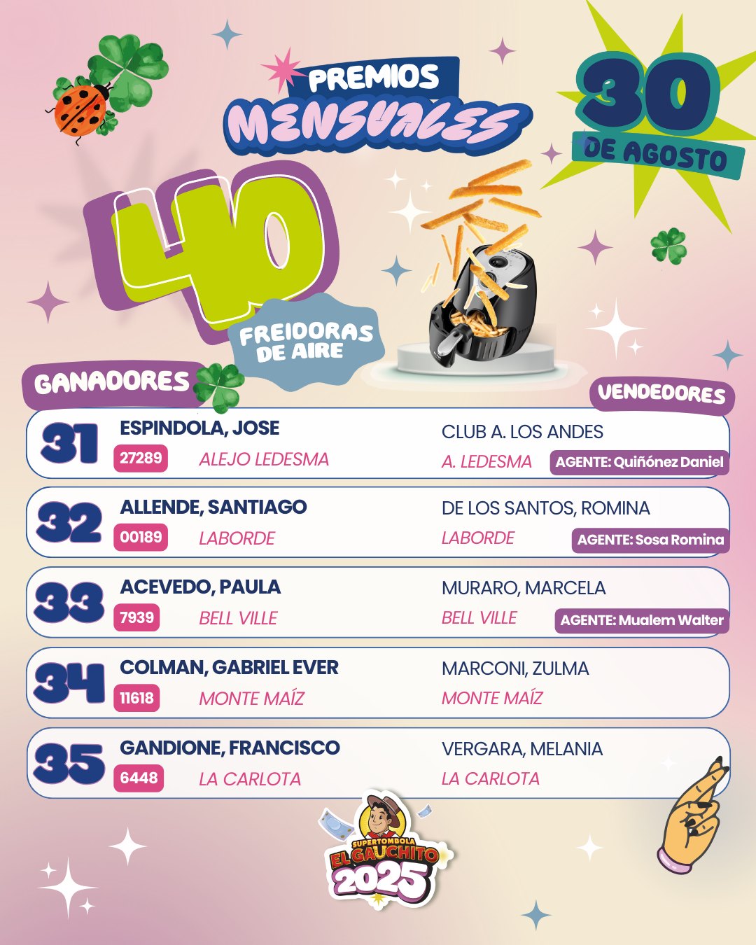 #SupertómbolaElGauchito #Edición2025 #GanadoresMensuales