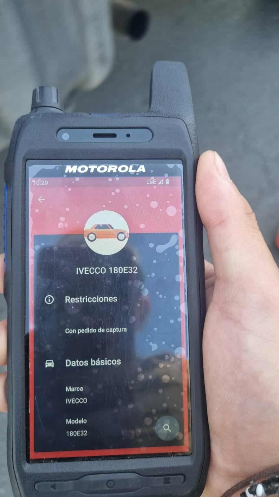 El vehículo, proveniente de la provincia de Santa Fe y conducido por un masculino mayor de edad, fue identificado mediante el dispositivo Motorola EVOLVE, el cual emitió una alerta de pedido de secuestro por la Unidad Judicial N° 8 de Córdoba Capital.