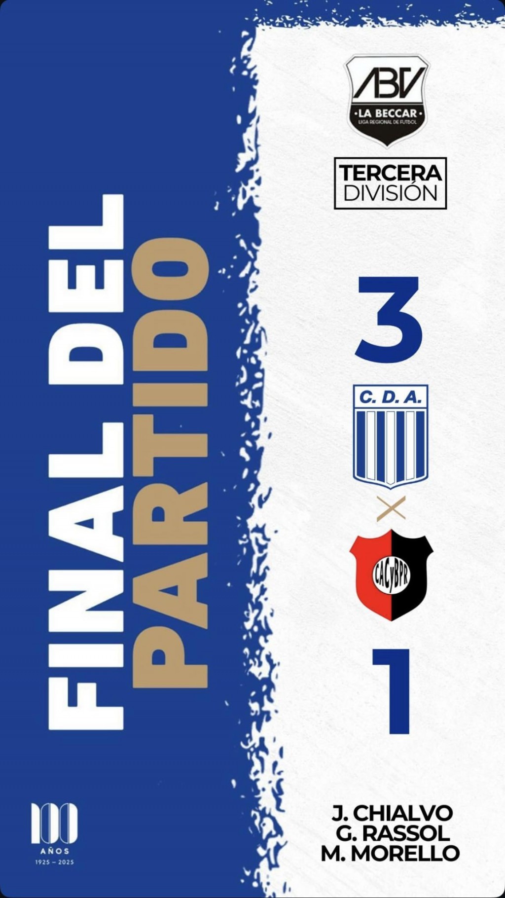 El partido se disputó este sábado por la tarde en el Complejo de Argentino y los goles del Raya los marcaron: Julián Chialvo, Gonzalo Rassol y Martín Morello.