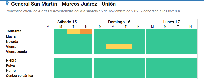 ALERTASMETEOROLÓGICAS PARA EL SUDESTE CORDOBÉS