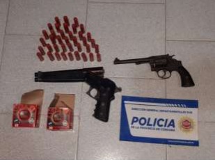 Continuando los Funcionarios Policiales con la tarea investigativa, a las 18:30 horas aproximadamente se hicieron presentes en la ex escuela San Eusebio, sita a 15 km al este de San Antonio de Litin, propiedad habitada por un masculino, mayor de edad (40) y su familia, y proceden a realizar allanamiento con resultado positivo, secuestrando once (11) animales vacunos, un (01) revolver calibre 38 largo, un (1) pistolón marca Rexio calibre 14 doble cañón superpuesto, en regular estado de conservación, treinta y seis (36) cartuchos calibre 14 mm y dos (02) aparatos celulares.