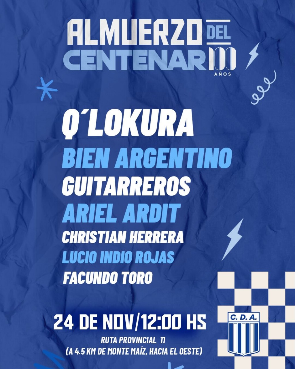 Un imprevisto climático obligó a la Comisión Directiva del Club Deportivo Argentino (CDA) a modificar la logística de la celebración central de su Centenario. Una fuerte tormenta reciente causó daños severos e inutilizó la carpa principal donde se iba a realizar el almuerzo conmemorativo.