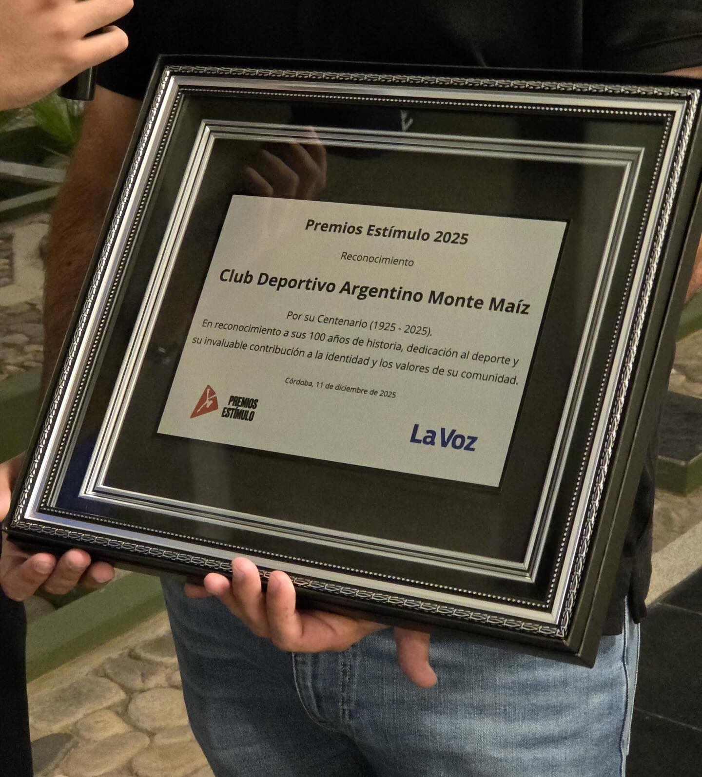 “Agradecemos públicamente a La Voz Del Interior que reconoció a nuestro Club en los “Premios Estímulo”, entregando ésta plaqueta al vicepresidente Gianfranco Nebbia, haciendo alusión al reciente Centenario del Club, a los cien años de historia, dedicación al deporte y a la contribución a la identidad y valores de la comunidad.