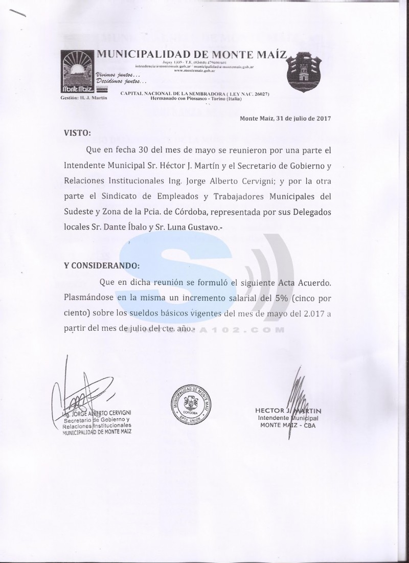 En la Sesión Ordinaria del último martes en el Concejo se aprobó un aumento salarial del 5% para los empleados Municipales que repercute también en los sueldos más altos que corresponden a los Funcionarios del Ejecutivo Municipal. Luego de la aprobación los sueldos quedaron de la siguiente manera: