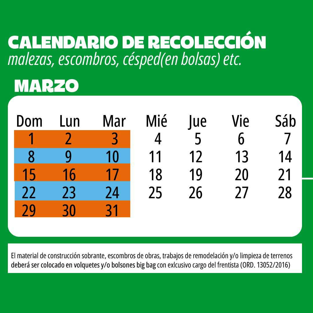 CALENDARIO DE RECOLECCIÓN DE MALEZAS DEL MES DE MARZO