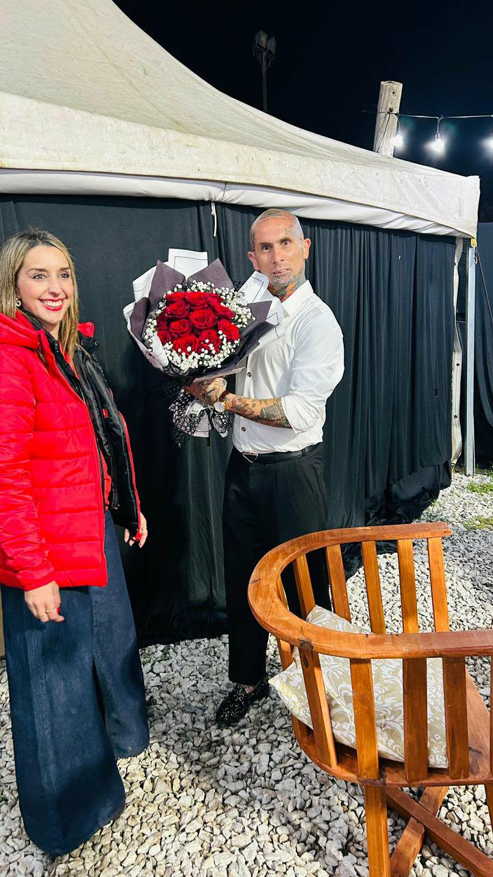 Como muestra de afecto y bienvenida, la organización le obsequió a Noir un imponente ramo de rosas de "Flores Nelly", un comercio clásico del pueblo. El cantante lo recibió con la humildad de siempre y subió a dar un show inolvidable.