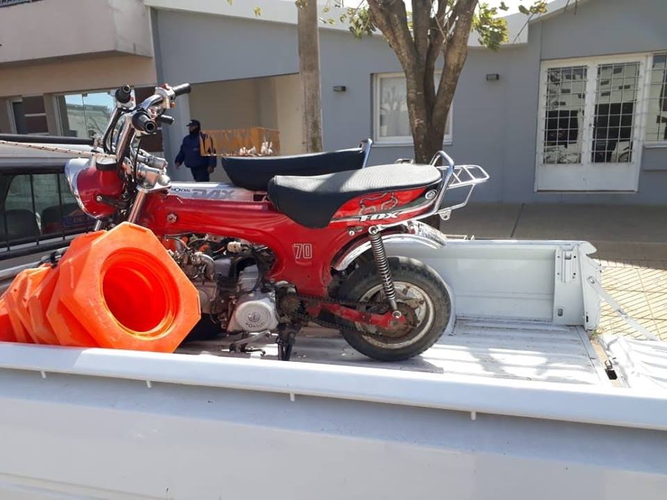 El jueves por la tarde Personal de la Dirección de Tránsito Municipal procedió al control y posterior secuestro de una Motocicleta Corven 110 c.c., Dominio798 LAO, conducida por Juan Maldonado, quien al momento del control viajaba a bordo del rodado de color rojo sin el casco obligatorio. Además no contaba con la documentación requerida y no tenía Licencia de conducir ni Seguro. La moto fue trasladada al Corralón Municipal.