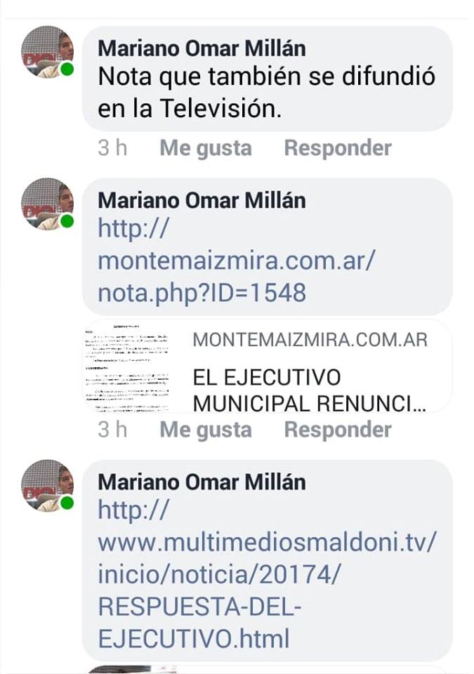 En la misma publicación de Facebook hemos respondido a las críticas mal intencionadas de la UCR de Monte Maíz colgando los Links correspondientes a cada publicación sobre el tema en cuestión. Tal noticia fue tratada y difundida en Radio, Gráfica y Televisión. Incluso, luego de tal difusión, el Secretario de Gobierno, Ing. Ramiro Acevedo, también se refirió al tema en Radiolínea y en Canal 2. (Audio Adjunto de Radiolínea).