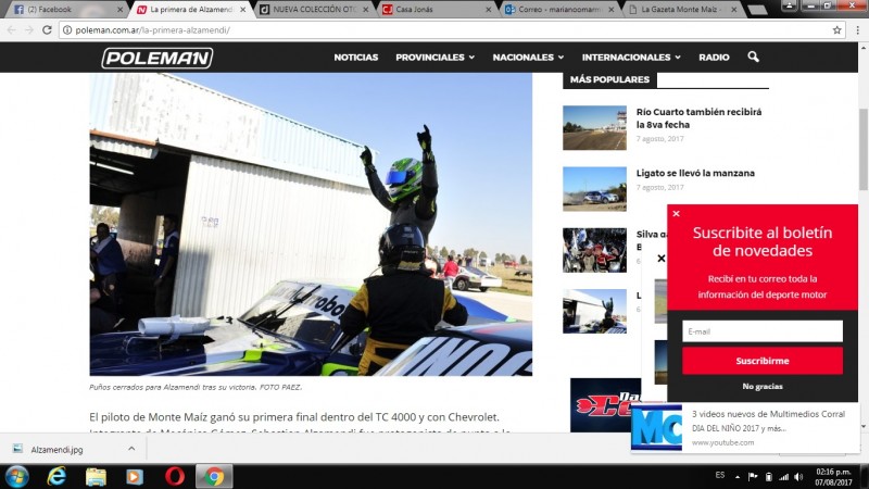 Sebastián Alzamendi se quedó con esta prueba el fin de semana y LuisCatelli también de Monte Maíz quedó en cuato lugar. Así lo refleja un Portal Informativo Ríocuartense cuyo artículo transcribimos: