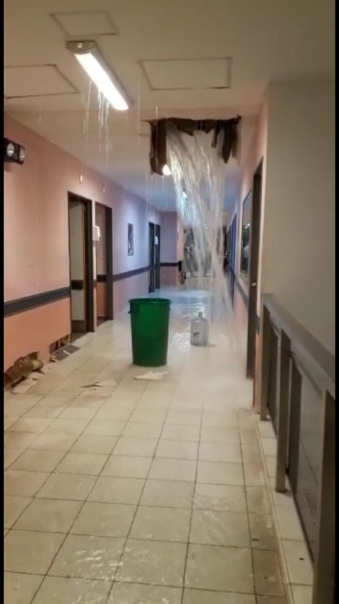 Minutos después de que la lluvia empezar a caer en la ciudad de Villa María, en el Hospital Pasteur comenzó a llover dentro del sector de internado para adultos, y se produjo el desprendimiento de uno de los techos.