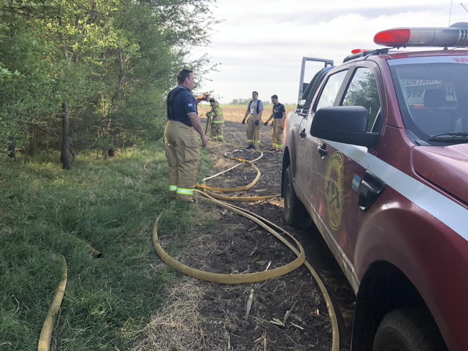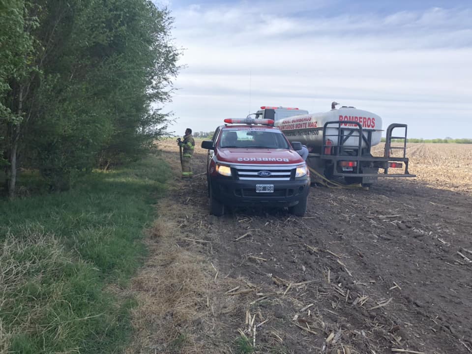 A las 15:15 hs. del jueves Bomberos Voluntarios de Monte Maíz fueron convocados a un incendio forestal en propiedad rural de la Sra. Nancy Vottero, ubicada a unos 14 kms. hacia el Sur de nuestra localidad. Por causas que se tratan de establecer tomó fuego un lote con rastrojos de maíz que se propagó hacia un pequeño monte ayudado por el viento. Se movilizaron las Unidades 15 y 16 con 4 efectivos que pudieron controlar el siniestro. Afortunadamente no hubo que lamentar lesionados.