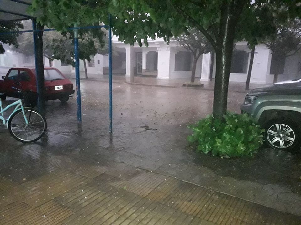 A las 19:30 hs. y tal como lo había previsto el Servicio Meteorológico Nacional se desató la tan ansiada lluvia en nuestra localidad y en la zona rural. Hubo caída de granizo de importante tamaño durante algunos minutos y fuertes ráfagas de viento que dejaron algunas ramas caídas en distintos sectores de nuestra localidad y anegamientos temporarios de calles céntricas.