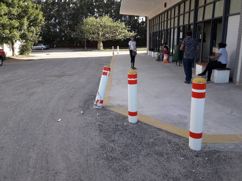 Un Interno de la empresa de transporte público LEP, cuyo N° no se pudo determinar, se chocó un cono de cemento que separa el playón de colectivos con la vereda interna de la Estación Terminal de ómnibus de Monte Maíz.