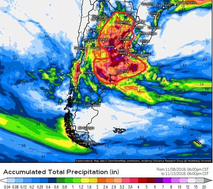 Y finalmente en respuesta al título, claro, pueden llover 400 mm o más en varios sectores del centro del país, como lo indican las figuras. Y si esto sucede habrán llovido lo que llueve en Noviembre pero multiplicado por 3, y en apenas 4 días.