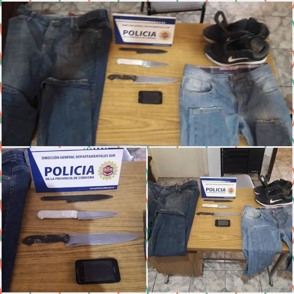 Tras una denuncia realizada en la Comisaría de Laborde por Maximiliano Gabriel Fernández, de 22 años de edad y oriundo de Laborde, en contra de Ignacio Rafael Herrera, alias “El Nacho”, de 24 años de edad y también de Laborde, quien se encontraba en Libertad Condicional; Personal Policial de esa localidad procedió a allanar el domicilio de Herrera ya que, según los dichos del damnificado, le habría sustraído, mediante amenaza con una cuchilla, un par de zapatillas; un pantalón de jean color azul y un par de medias. Además, el denunciante manifestó haber sido agredido y lesionado con el arma blanca.