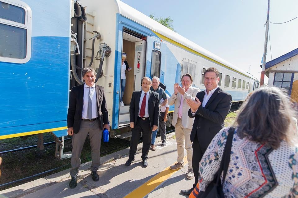 De uno de los vagones bajó el intendente, Dr. Carlos Briner, quien estaba acompañado por el presidente del Concejo Deliberante, Dr. Ernesto Gavier; Sra. Silvia Abbas encargada de las negociaciones municipales con la Nación; el concejal Prof. Iván Vieyra y el ex edil Dr. Mariano Bondone, quienes en los años 2015 y 2010, respectivamente, intentaron restablecer la parada ferroviaria, aunque sin éxito, pero dejando precedentes.