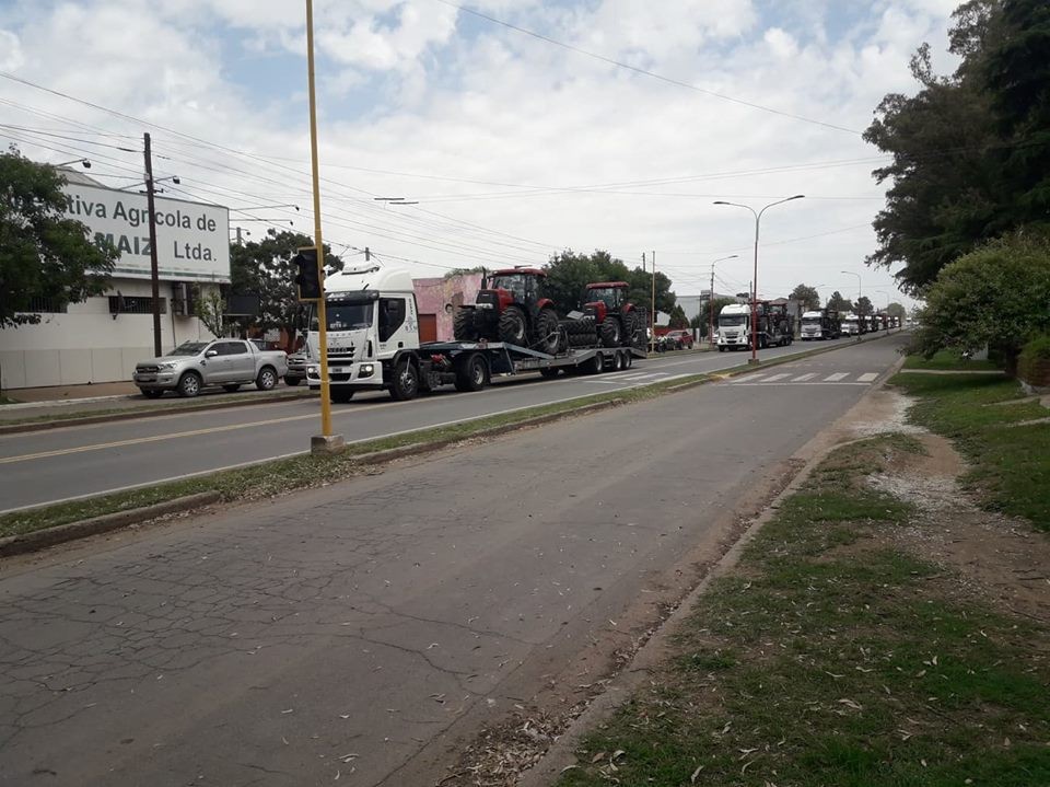Un imponente despliegue de maquinaria agrícola se vio en la mañana del viernes transportada por nueve camiones que llegaron a la empresa Semtraco S.A. de nuestra localidad. Llegaron 12 tractores, 2 cosechadoras y un pulverizador. Algunas de estas maquinarias ya vendidas y otras para quedar a disposición de los clientes.