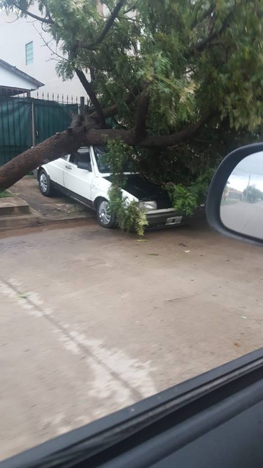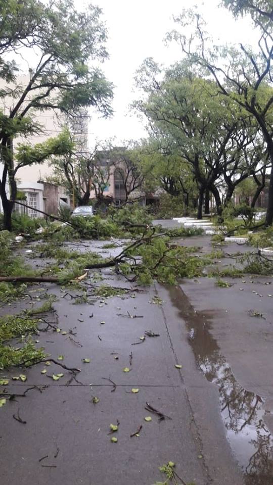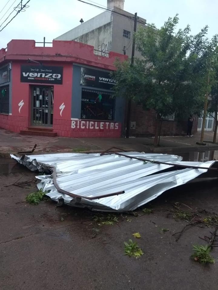 Hubo decenas de árboles caídos en el Bouledvard 25 de mayo, voladuras de techos en algunas viviendas, caída de estructuras metálicas y vehículos dañados.
