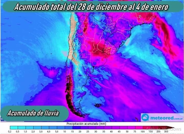 Se espera un periodo muy inestable para una amplia franja del país, a partir del jueves 27, hasta el 4 de enero de 2019, acumulados estimados muy significativos para la mayor parte del área central y Litoral.