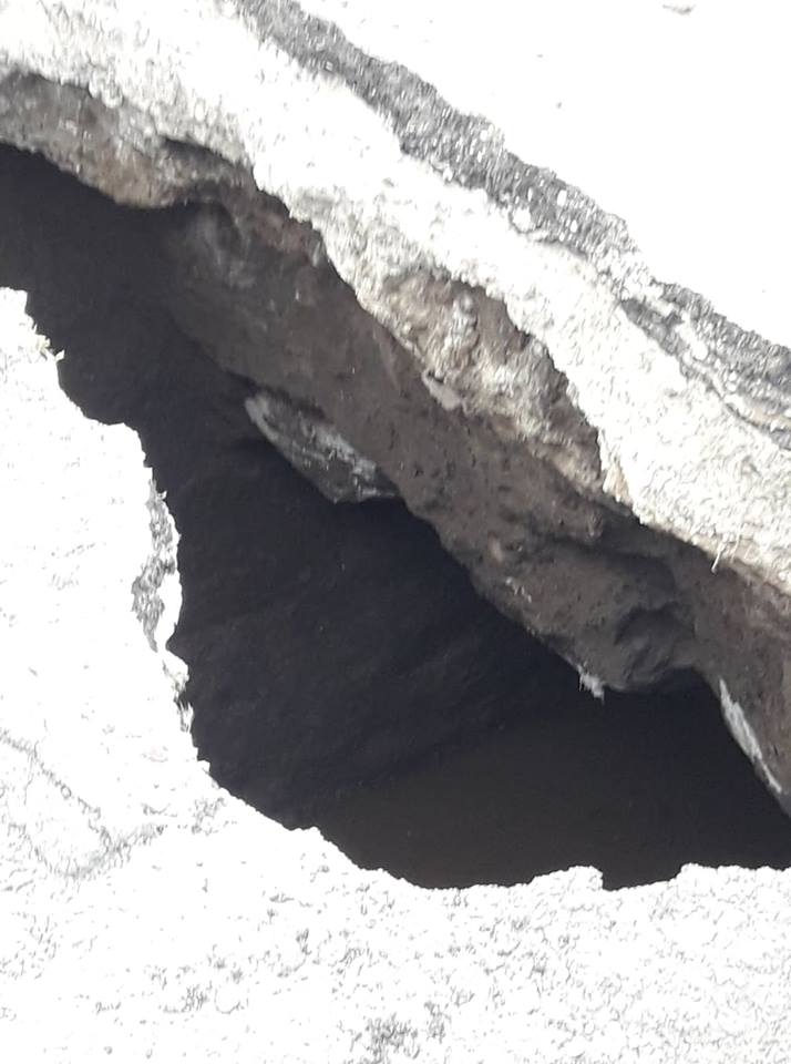 En el extremo Este se ha hecho una importante grieta donde se ven bolsones de material que fueron colocados en el arreglo del año 2016 cuando se produjo un problema similar aunque no de tanta gravedad ya que la reparación demoró solo 48 hs.