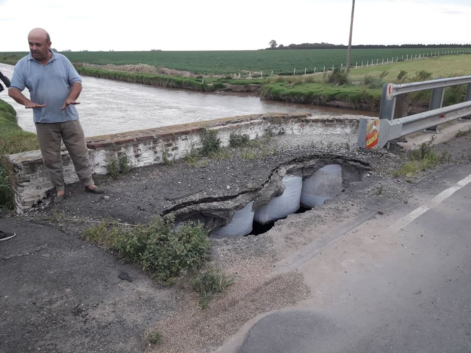 Empresarios lecheros, porcinos y cerealeros ven con mucha preocupación la inacción de las autoridades del sector público ante la gravedad de la situación. El puente sufrió la llegada de troncos y ramas hace aproximadamente un mes y esto produjo un pequeño desvío del cauce que ocasionó el descalce de la ruta. Solo se actuó cuando el daño estuvo consumado.