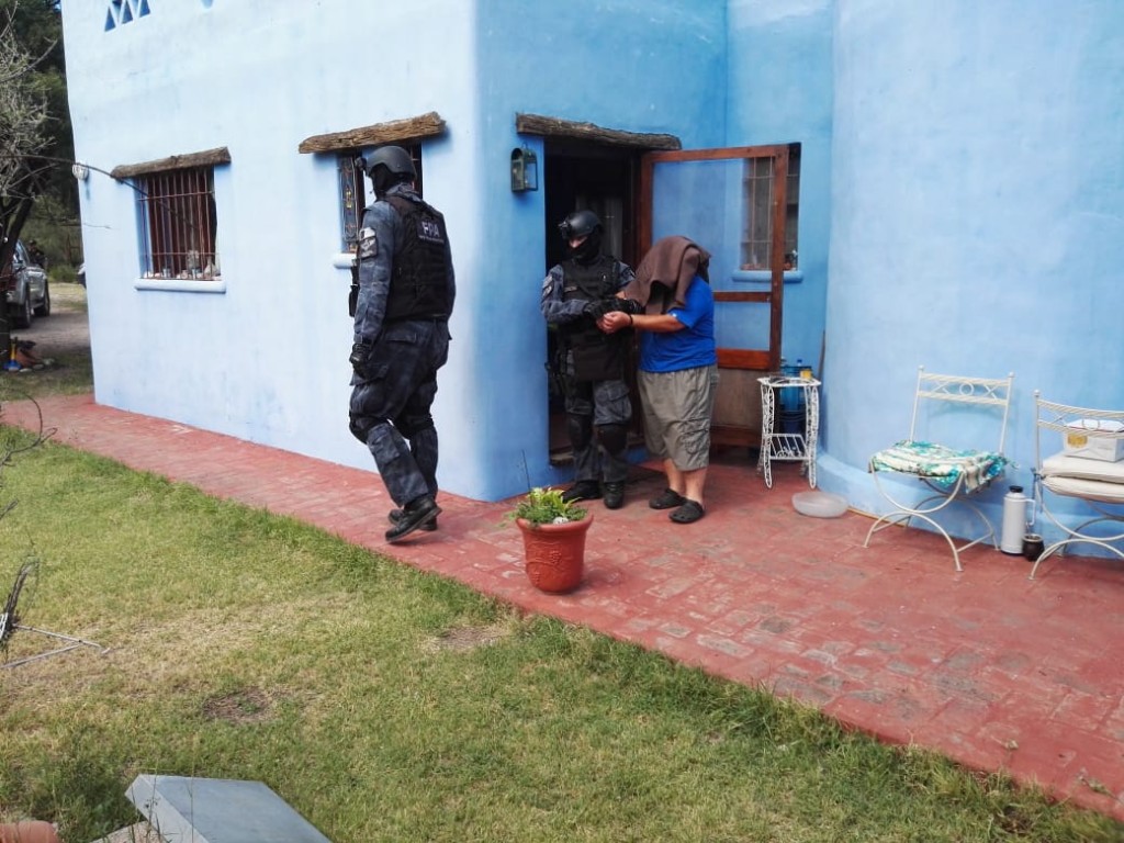El primero de los allanamientos se desarrolló en una estancia emplazada en un entorno serrano de la localidad de Charbonier, próximo a la Ruta Nacional 38 km 90.