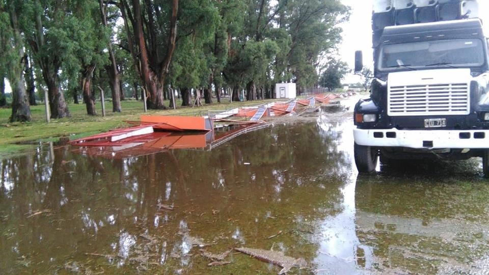 Además el fuerte viento provocó algunos destrozos de estructuras de buffet y escenario que, de continuar el mal tiempo, es difícil volver a armar en medio del agua y con tan poco tiempo.