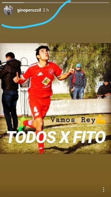 El viernes el jugador de San Lorenzo de Almagro, Gino Peruzzi, oriundo de la ciudad de Corral de Bustos, publicó la foto de Fito en su Historia de Instagram y cuya leyenda dice “Vamos Rey” y “Todos x Fito”.