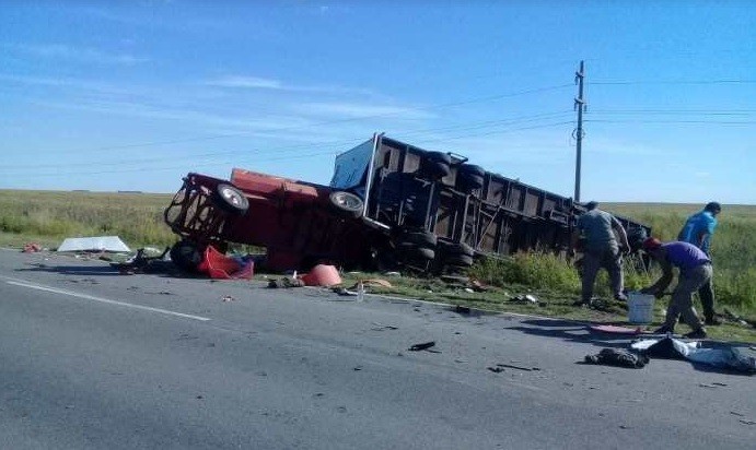 Alrededor de las 16:45 del martes, un camión chocó contra los enganches de un tractor, lo que produjo un vuelco. El siniestro se produjo en la Ruta Provincial 1 entre las localidades de Relmo y Catriló, Provincia de La Pampa.