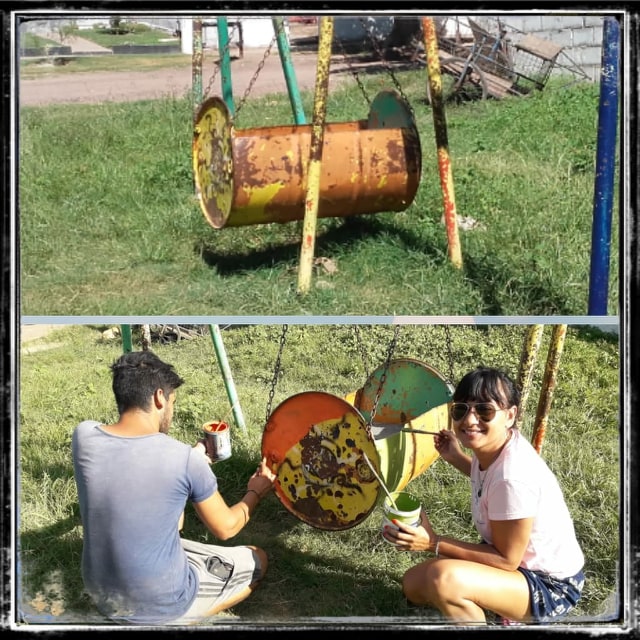 En tanto Jésica Sosa, amplió los dichos de Agustín y expresó: “La mayoría de los juegos estaban rotos y el pasto muy alto. Como era mucho el trabajo que había que hacer nos fuimos organizando ya que todos nosotros tenemos familia y obligaciones. Conformamos grupos y comenzamos cortando el pasto el sábado -16 de febrero- por la tarde y continuamos arreglando y pintando los juegos. Tareas que concluimos el jueves -21 de febrero- en donde nos surgió la idea de proyectar una película para los chicos y tuvimos una convocatoria muy grande. Muchas familias que llevaron a sus niños para disfrutar de la película”.