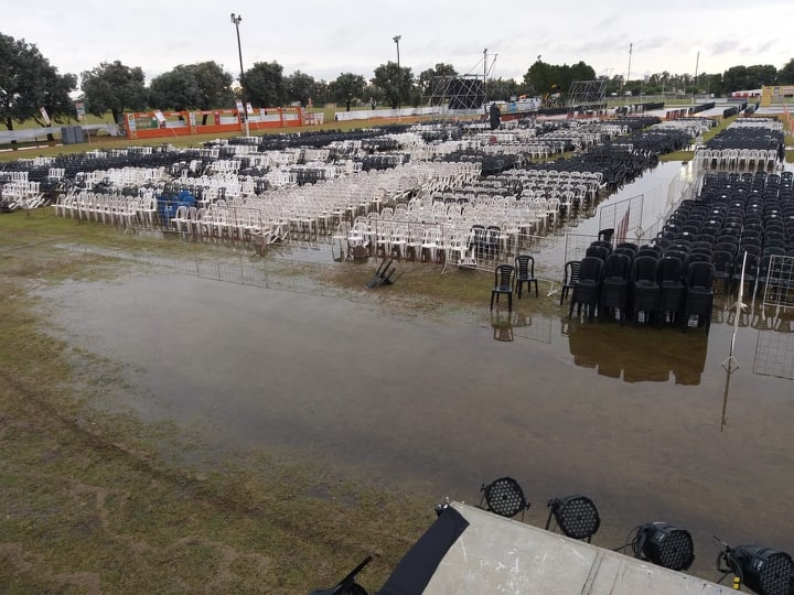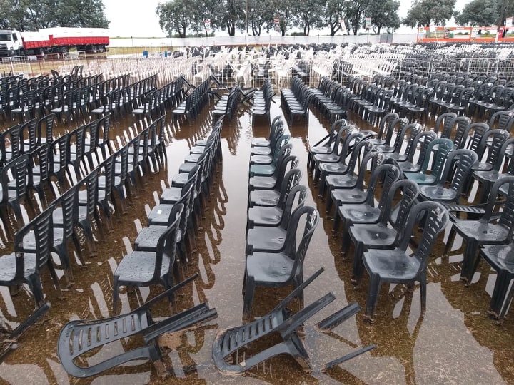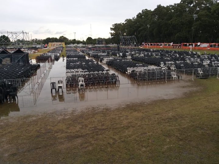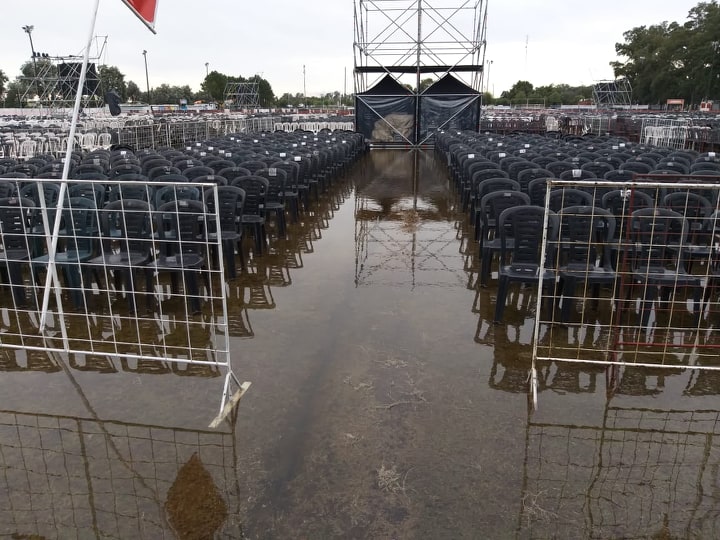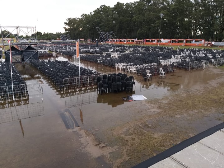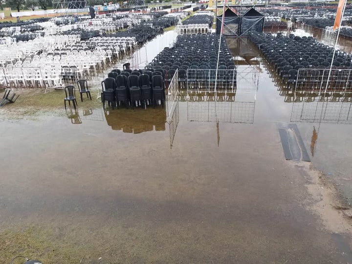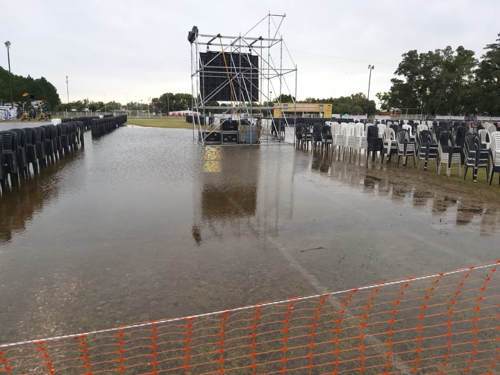 En un primer momento, estaba previsto que, de tener que suspender el evento por lluvia, se reprogramaría inmediatamente para el día de hoy. Pero el clima jugó una mala pasada y los más de 100 milímetros caídos en Monte Maíz dejaron el predio con mucha agua y era imposible realizar el evento así. Aquí te dejamos algunas imágenes de cómo quedó el predio tras el temporal.
