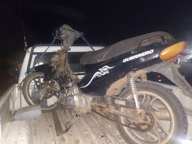 También se procedió a la retención de una Motocicleta Guerrero Trip 110 c.c. de color negro. Sobre su conductor no se precisó la identidad pero viajaba con más de los tripulantes permitidos. No usaban el casco Reglamentario. Y al momento del control no tenía Licencia de Conducir ni la Documentación del Rodado.