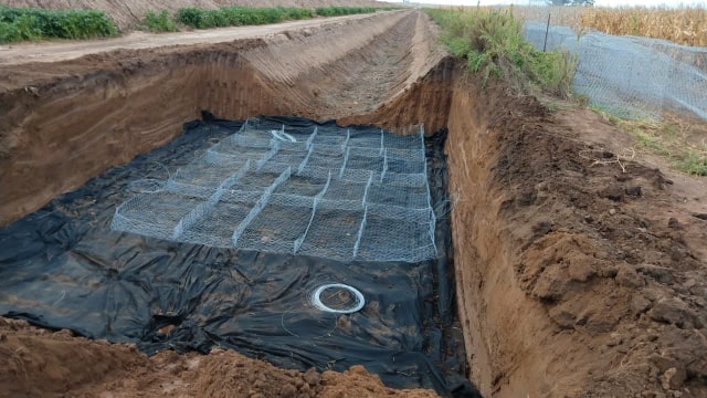 Sobre el tema el Ing. Jorge Cervigni, Presidente del Consorcio Canalero explicó que se van a hacer tres de estos saltos: “Este es un canal que no es muy profundo y se comenzó desde un camino que va a Monte Buey de Este a Oeste y hacia el Sur. Se debió construir ahí una especie de By Pass donde quedó el espacio para los saltos. Por ellos el agua cae como si fuera una pequeña cascada para tomar otro nivel. Hay que hacer tres de estos saltos. Son muy caros porque se construyen con gaviones. Estos son como un fardo hecho todo de alambre y con piedras adentro. Esto hay que afirmarlo y unirlo con hormigón de tal manera que el escurrimiento del agua no lo rompa y ese salto se mantenga con el tiempo. Los materiales están todos. Eso lleva una maya geotextil que es la que permite el paso del agua pero no de la tierra para que no se rompa. Cada salto lleva dos bateas de piedras y mucha mano de obra para armarlos. Luego con una Retroexcavadora se van colocando como si fueran ladrillos y se hormigonea”, detalló.