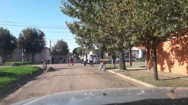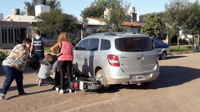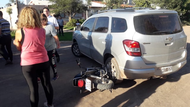 El auto circulaba en la misma dirección de la moto y, al juzgar por las marcas en la carpeta arenada que compone la calle, intentaba realizar un giro en “U” hacia la izquierda y en ese momento se produjo el choque.