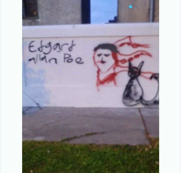 Mientras se realizaba un recorrido de rutina alrededor del cementerio se pudo constatar que autores ignorados realizaron pintadas de graffitis con aerosol en las paredes Norte y Oeste del mencionado lugar.