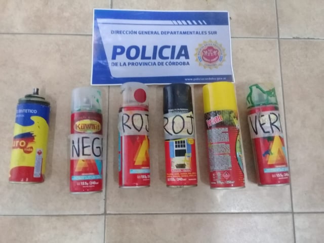 En el lugar se secuestró seis tarros de pintura en aerosol de distintos colores. Como consecuencia, y por Orden del Magistrado interviniente, se dejó citados a los dos sujetos para que comparezcan en dicha Fiscalía y se eleven las Actuaciones correspondientes.