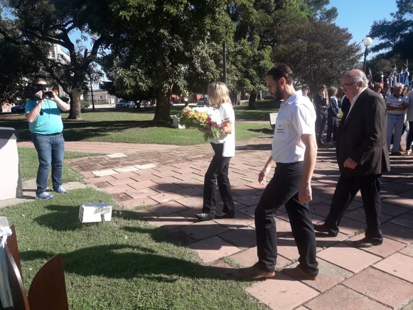 Acto seguido, el Intendente Cacho Martí, la Presidenta del Concejo y el Director de Cultura, Lic. Germán Bonetto, depositaron una Ofrenda Floral en el Monumento a Malvinas.
