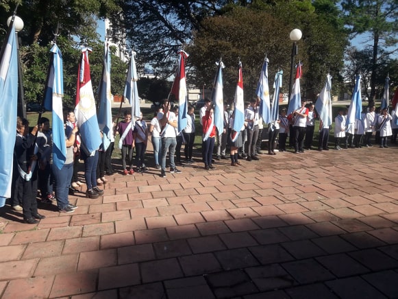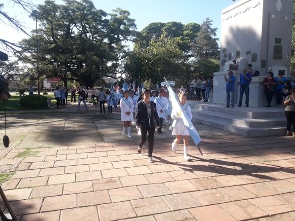 Participaron Abanderados y Escoltas de Instituciones Escolares y Fuerzas Vivas locales. Las autoridades Municipales estuvieron representadas por el Intendente Cacho Martín y el Secretario de Gobierno, Ing. Ramiro Acevedo. También estuvo el Director de Cultura, Lic. Germán Bonetto, la Presidenta del Honorable Concejo Deliberante, María Luján Vasallo y Concejales de ambos Bloques.