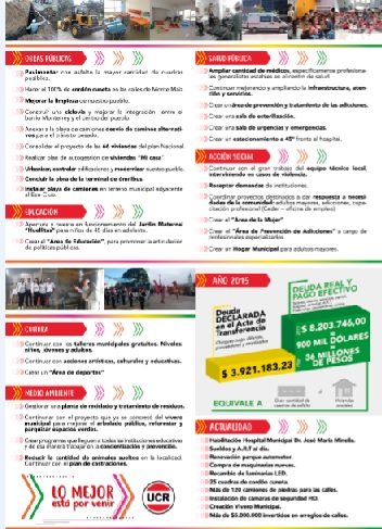 Luego del Acto de cierre de campaña de la UCR, el candidato a Intendente Cacho Martín dijo en Canal 2: “Ahora hay que esperar al domingo a ver que decide la gente. Nosotros hemos hecho una propuesta innovadora para lo que viene. Yo estoy convencido de que cuatro años no alcanzan para lograr los resultados que uno pretende como Intendente de un pueblo. Porque siempre hay inconveniente y eso te lleva la mitad del tiempo. Por lo tanto dos años te la pasás acomodando cosas o renegando. Además lleva mucho tiempo todo lo que hay que aprender. Porque siendo Intendente no es lo mismo que cuando uno maneja un negocio común. Todos los días se aprenden cosas nuevas. Y el manejo de la “cosa” pública es bastante complejo. Ahí te encontrás con 200 empleados; con la problemática del comercio; con problemáticas sociales y las problemáticas del mantenimiento del pueblo. Por eso, insisto en que cuatro años es poco y ocho años está bien. Por eso la Ley que hicieron de que los Intendentes solo pueden tener dos mandatos es correcta. Y yo quiero mi nueva etapa de cuatro años para hacer lo que yo quiero hacer para el pueblo. Y después me voy. Por eso le pido a la gente que me apoye y que vea la forma de que nosotros podamos seguir siendo Gobierno. Yo le prometo que no los vamos a defraudar con respecto al trabajo que venimos haciendo”, concluyó.