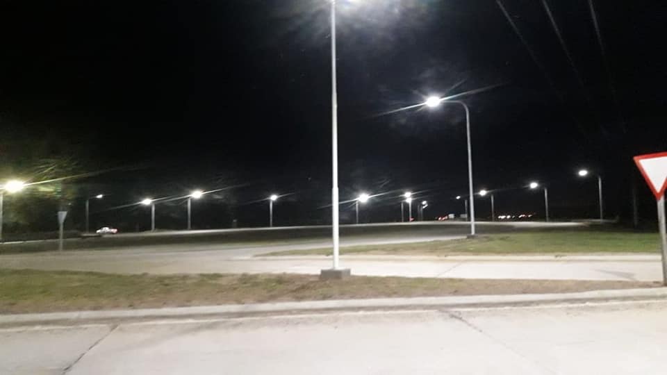 Desde el miércoles 17 de abril la rotonda del cruce entre las rutas Provinciales N°11 y N°12 se encuentra iluminada. Luego de varios años que lleva inaugurado ese lugar se colocaron 39 columnas equipadas con luminarias Led, dos paletetas por poste.
