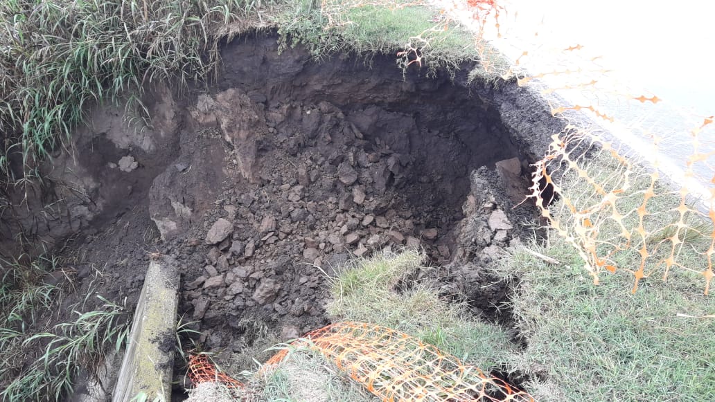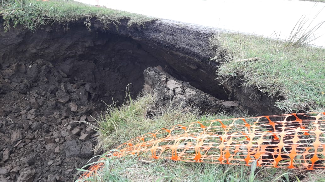 En tanto se recomienda transitar con mucha precaución por el lugar ya que solo se ha habilitado una sola mano. Existe peligro de que algún vehículo pueda despistar y caer en el pozo que dejó el desmoronamiento de la alcantarilla.