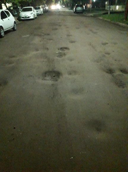 En este caso solo estamos mostrando los pozos de un tramo de la calle Mendoza de B° Gobato, entre Chubut y Las Malvinas, ya que es un lugar con muchos reclamos y pocas soluciones.