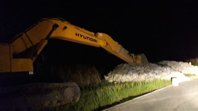 En horas de la tarde del lunes llegaron las máquinas de la Dirección Provincial de Vialidad, material de cemento y premoldeados de hormigón para la reparación y el recambio de la alcantarilla de ruta Provincial N°11 en cercanías del lugar conocido como “La Planta” (eucaliptus) en la mano Norte (con dirección de Monte Maíz hacia Wenceslao Escalante).