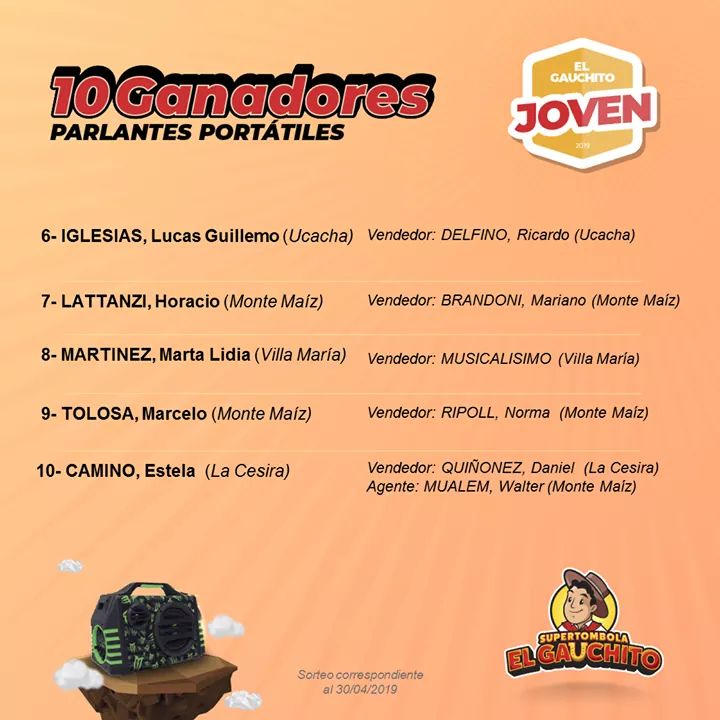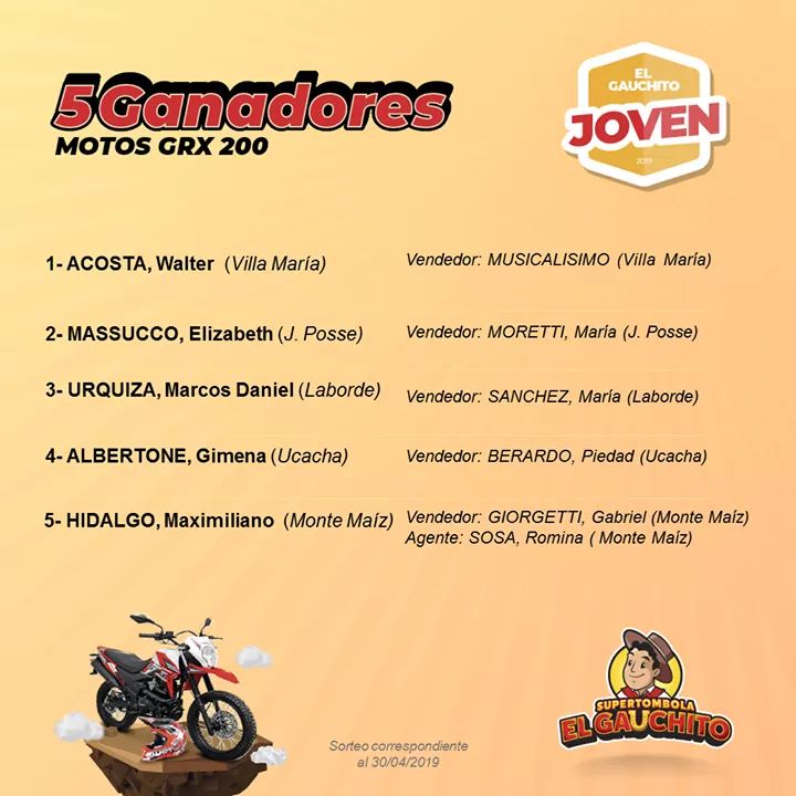 SÚPER TÓMBOLA EL GAUCHITO: SORTEO MES DE ABRIL