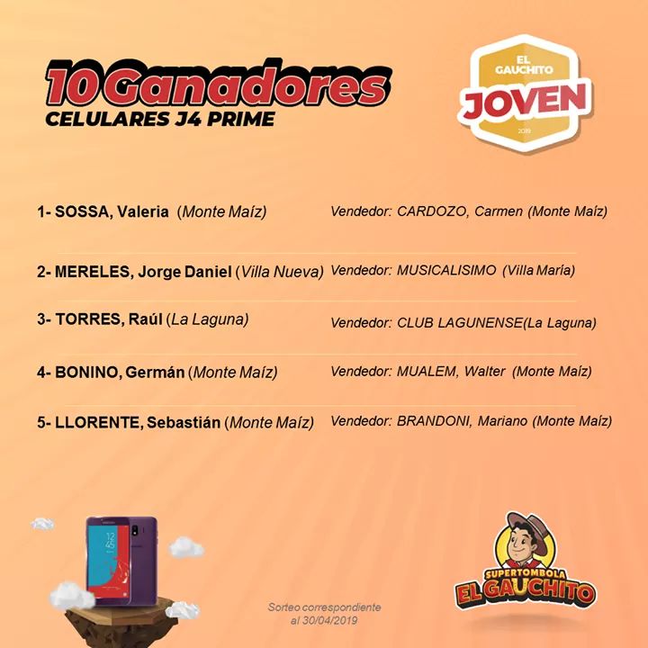 EL GAUCHITO JOVEN. 10 CELULARES J4 PRIME, 10 PARLANTES PORTÁTILES Y 5 MOTOS GRX 200