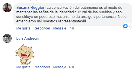 La Profesora Susana Reggiori, del Museo Regional Nélida Chiarlo, expresó en un comentario a través de su Cuenta de Facebook: “La conservación del patrimonio es el modo de mantener las señas de la identidad cultural de los pueblos y eso constituye un poderoso mecanismo de arraigo y pertenencia. No lo entendieron así nuestros representantes!!!”.