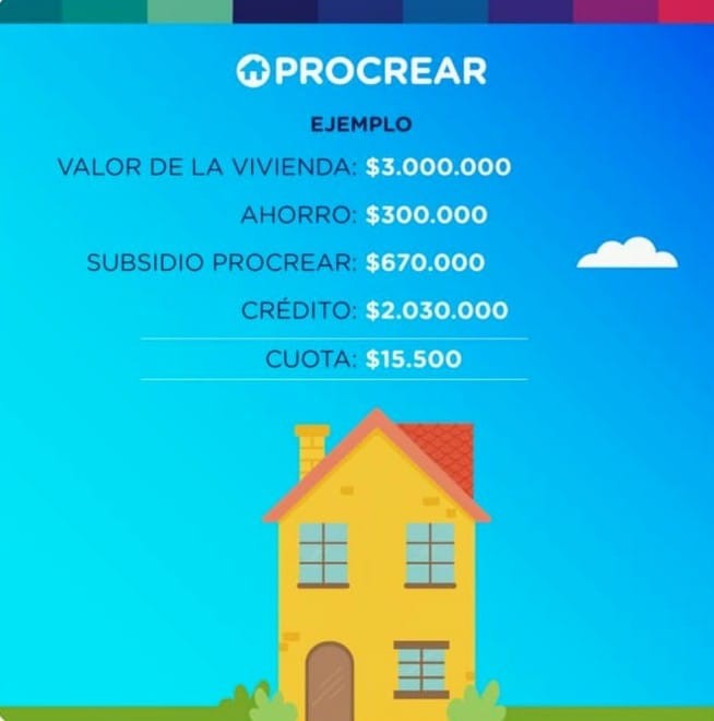 Según datos brindados por Inmobiliaria Mondino en una vivienda que tiene un valor de $3.000.000 el Estado exige tener un ahorro del 10% del monto total; es decir, $300.000. El subsidio del PROCREAR es de $670.000. Lo que el Banco va a desembolsar en este caso asciende a unos $2.000.000. Para que el Banco otorgue un préstamo así, el inscripto deberá demostrar ingresos capaces de afrontar una cuota de unos $15.500.