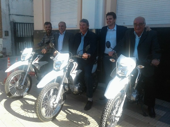 El Gobierno Provincial mantuvo esta tarde una reunión con Intendentes de la región en la localidad de Canals de la cual participó el Intendente de Monte Maíz Cacho Martín. Allí, el Legislador del Departamento Unión, Dardo Iturria y el Secretario de Asuntos Municipales e Institucionales, Juan Carlos Scotto hicieron entrega de una Motocicleta Honda XR 0 km. 150 c.c. y un Kit de Seguridad Vial a ocho Municipios. El Intendente Cacho Martín recibió el vehículo, que será asignado al área de Seguridad Ciudadana, y el Kit de Seguridad Vial de manos de autoridades Provinciales en representación del Ministerio de Gobierno a través de la Comisión Provincial de Tránsito y Seguridad Vial. Según la Orden de entrega, este Kit, Módulo “C”, consta de 6 Chalecos Refractarios; 15 Conos; 4 Destelladores; 2 Linternas de mano; 2 Bastones lumínicos y 120 litros de Pintura Vial.