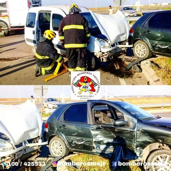 En horas de la tarde del miércoles, 16:18 hs., Bomberos Voluntarios de Marcos Juárez fueron alertados de un accidente de tránsito entre un automóvil y un utilitario en la bajada del puente de Av. Las Colonias y Autopista en la mencionada ciudad.