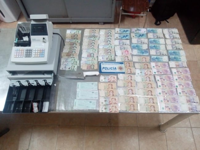Al arribar los uniformados al lugar pudieron constatar que autor/autores ignorados, previo a ejercer violencia en la puerta de ingreso del local, le sustrajeron una cuchilla y una caja registradora con $28.000 en su interior. Los mismos estaban discriminados en billetes de distinta nominación.